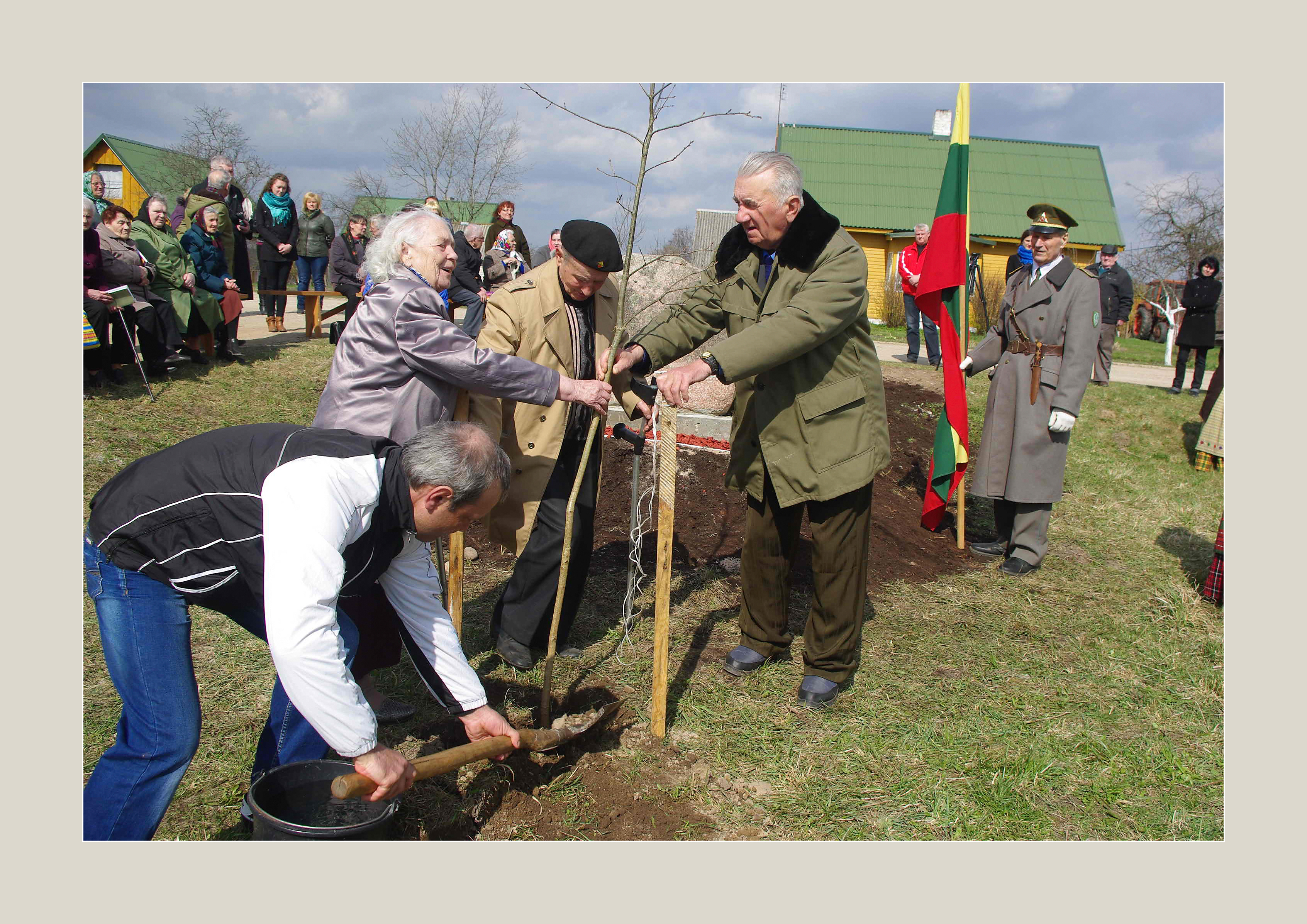 Paminklinio akmens -atminties įprasminimo pagrindiniai iniciatoriai – broliai Gintautas ir Vladas Kleinotos, išgyvenę kaimo tragediją, savo apsilankymu fotoparodoje pagerbė autorių Vytautą Žemaitį ir padėkojo už jo iniciatyvą. Parodą suorganizuoti Trakų krašto fotografų asociacijai „Fotra“ padėjo Onuškio seniūnija su seniūne Zita Aniuliene priešaky, finansiškai parėmė Trakų rajono savivaldybė.